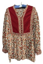 Woman Within Top L (18/20) Red Calico Floral Flowy Rayon Peasant Shirt Blouse