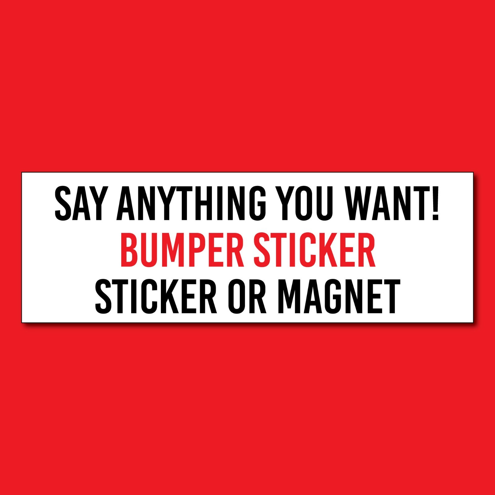 This permanent bumper sticker will just have a plain white background with black text. These bumper stickers are very durable and long lasting! Add in the personalized wordings you would like. (Note: Too many words makes it hard to read from a distance.).