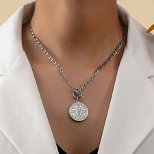 Women's Fashion Alloy Circular Pendant Necklace Silvery Collarbone Chain | ✔ Check At Store | $4.98 |