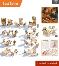 Natural Wood Dollhouse Furniture Set - Safe 34-Piece 3D Puzzle for Creative Play | ✔ Check At Store | $17.99 |
