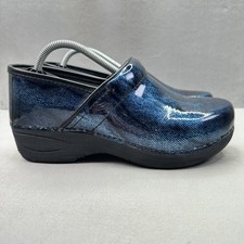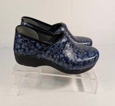 The Dansko XP 2.0 Woman's Clog in the Denim Floral color Size 38 (7.5US) is a professional slip-on shoe designed for women. Featuring a blue floral pattern on a denim fabric base, this clog combines style with comfort. Made with a patent leather upper material, this Dansko XP model offers a unique and fashionable design for those looking for a durable and versatile shoe.