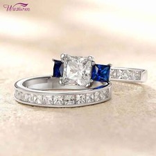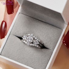 Crafted from 925 solid sterling silver. The matching wedding band features 17pcs matching round stones in a pave setting. The stones really catch the light and are very sparkly. The center stone has unbelievable depth and brilliance!