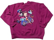 VTG Tultex Betty Boop Motorcycle Crewneck Fuchsia Sweatshirt XL 90s Fishnets USA