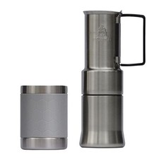 Café, Portable Coffee Maker, Portable Espresso Machine, Compact Camping Coffee Maker, Stainless Steel Travel Coffee Maker with Camping Coffee Cup, Reusable, 12 Oz. It’s slim and light with a travel coffee cup that nests perfectly with the travel espresso maker, saving you from the bulky weight in your camping bags.