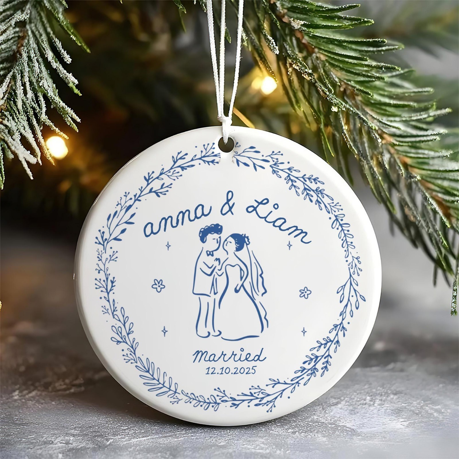 First Christmas Married Ornament, Custom Married Ceramic Ornament, Xmas Decor | ✔ Check At Store | $8.99 |
