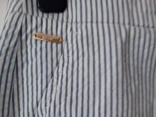 These Per Una seersucker stripe trousers in blue and white are perfect for holiday or cruise wear. Made from lightweight cotton fabric, they feature a zip closure, high rise, and straight leg style for a comfortable fit. With a 27-inch inside leg and pockets for convenience, these dress pants are easy to care for with machine washable instructions. The striped pattern adds a stylish touch to these versatile trousers, ideal for summer and spring occasions. Please see photographs for measurements as some garments may run small or large Check out my other items