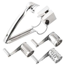 The Stainless Steel Hand-Cranked Rotary Cheese Grater is a kitchen tool designed for grating cheese and shredding ginger. Its durable stainless steel material ensures longevity and easy maintenance. The hand-cranked rotary mechanism makes it convenient to use, providing efficient shredding and grating for various culinary tasks. The silver color adds a sleek and modern touch to any kitchen decor, making it a versatile and practical addition to any home chef's collection of kitchen tools and gadgets.