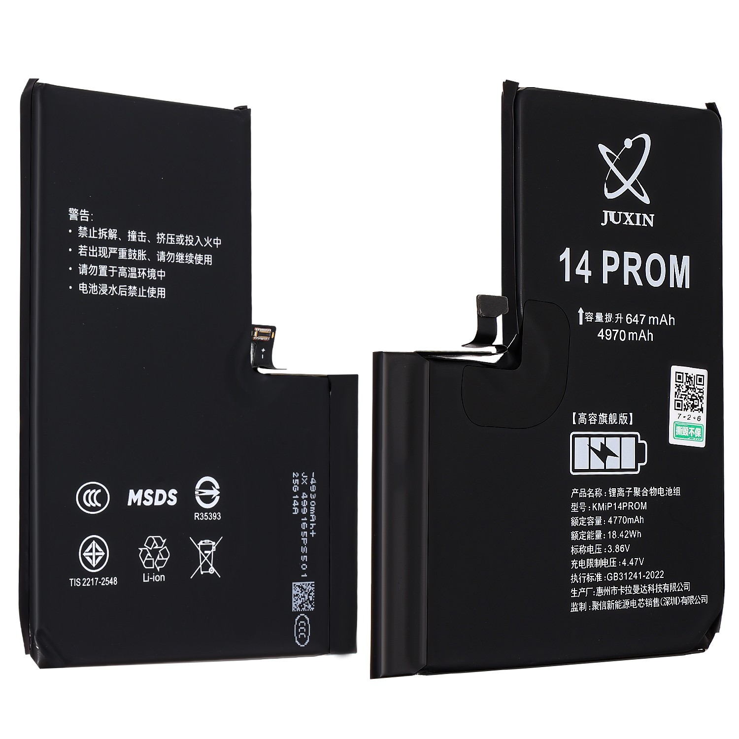 Light weight, high capacity and low impedance. For Apple iPhone 14 Pro Max (Capacity: 4970 mAh). For Apple iPhone 14 Pro (Capacity: 3570 mAh). For Apple iPhone 14 (Capacity: 3830 mAh). All Battery Tested for 0 Cycle, 100% Battery Life, Full Capacity.