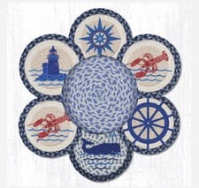 6 Braided Jute 10" Round Trivets with 1 Coordinating Basket. NAUTICAL