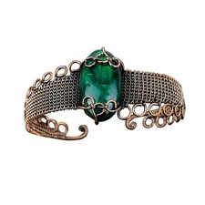 Green Fire Labradorite Copper Valentine Gift Wire Wrapped Cuff Adjustable Bangle | ✔ Check At Store | $33.88 |