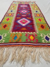 Vintage Traditional Handmade Turkish Wool Green Kilim 6.8x2.11ft | ✔ Check At Store | $250.00 |