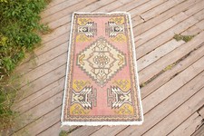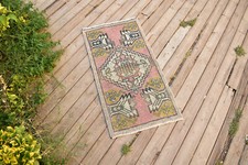 VINTAGE TURKISH RUG 1X3 SMALL HAND-KNOTTED WOOL MAT KITCHEN RUG MUTED DECOR