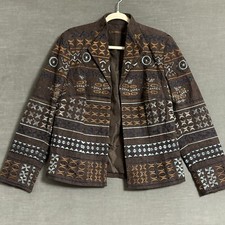 Coldwater Creek Embroidered Blazer Jacket Womens L Gray Tribal Western VTG 90s