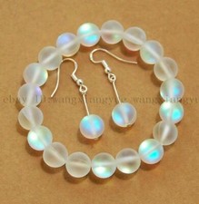 Natural 6/8/10/12mm White Gleamy Rainbow Moonstone Bracelet Earrings Set 7.5" | ✔ Check At Store | $3.51 |