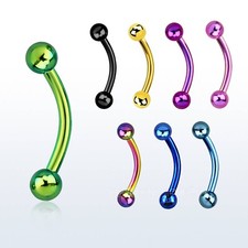 $16G Anodized Curved Eyebrow Barbell You'll receive 1 piece of size/color of Titanium Anodized 316L Surgical Steel Curved Eyebrow Barbell. Guaranteed Top Quality Titanium Anodized 316L Surgical Steel. Product Description: - Anodized Ball Curved Eyebrow Barbell - Titanium Anodized over 316L Surgical Steel - Externally threaded ends - Gauge (thickness): 16 Gauge (1.2mm) - Length/ Size: 5/16", 3/8" inch (8mm, 10mm) - Ball Size: 3mm - Color: Green, Black, Gold, Purple, Pink, Rainbow, Blue and Light Blue. - Quantity: 1 piece Check out my [other items] (http://search.ebay.com/?sass=ppbodyjewelry683&ht=-1) ! Visit My eBay Store: ppbodyjewelry Be sure to add me to your [favorites list] (http://my.ebay.com/ws/eBayISAPI.
