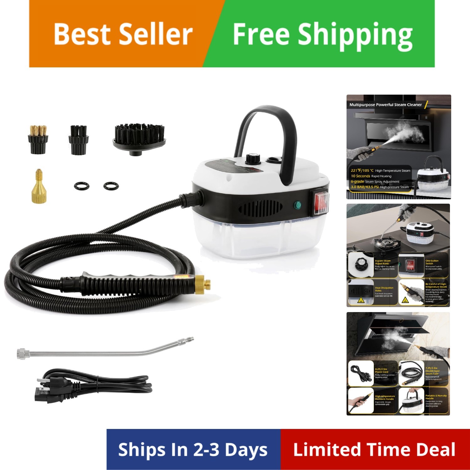 Steam Cleaner 2500W Car Steamer for Auto Detailing Handheld Steamer Cleaner f...