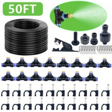 Screw the misting nozzles to the Tee fittings, except the last one on the end plug. Turn on the tap slightly until jets are working, enjoy the cooling misting system. Turn the water off and install the last nozzle into the fitting with the end plug.