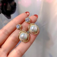 18k Gold Filled Simulated Pearl Drop CZ Round Crossover Flower Stud Earrings