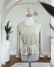 Cream Crochet Knit Top Sheer Waist Tie Vintage 90s Boho Western Cottage Dainty S