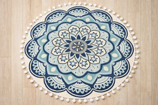 Round Rug 3ft Blue Mandala Boho Rug with Pom Pom Fringe Non-Slip Washable Rug | ✔ Check At Store | $49.00 |