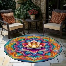 1pc Lotus Mandala Printed Round Area Rug Polyester, Hand Wash Only, Machine Mad