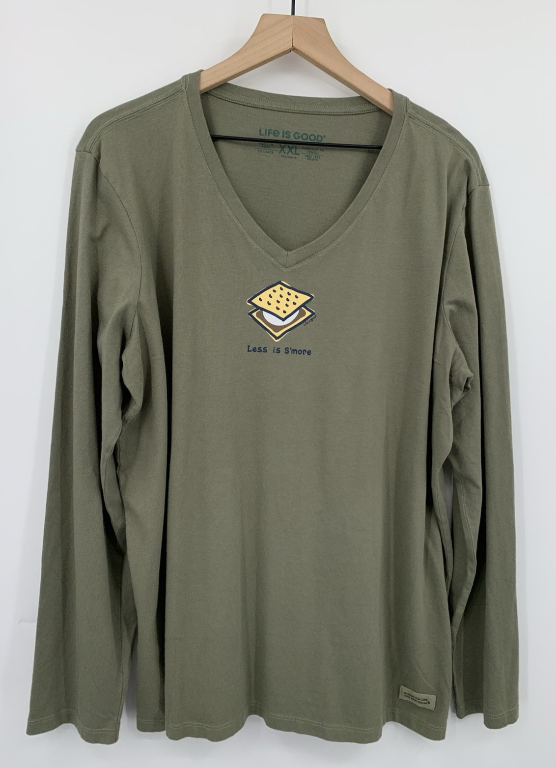 Life is Good Shirt Womens XXL Green Crusher Tee Less Is Smore NEW
