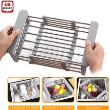 Adjustable Stainless Steel Kitchen Dish Drying Sink Rack Drain Strainer Basket