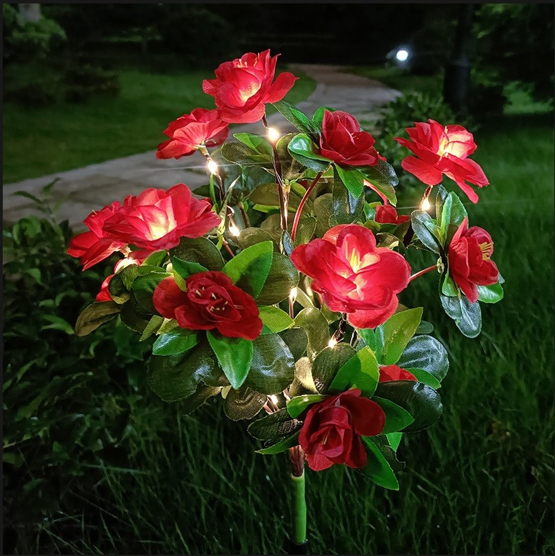 Adjustable & Auto Function: Solar flowers leaves and stems are all propped up by iron wires, which have better flexibility and durability and allow you to bend these solar flower lights in any style and angle you like.