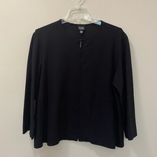 EILEEN FISHER Black Full Zip Viscose Blend Crewneck Simple Luxury Jacket Size XL | ✔ Check At Store | $39.99 |