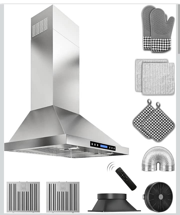 30 inch Stainless Steel Wall Mount Range Hood - 900 CFM, Ultra-Quiet 4-Speed Ven
