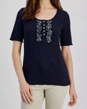 Nautica Jeans Women's Blue Ribbed Logo Round Neck Short-Sleeve Top Size ExtraS | ✔ Check At Store | $14.98 |