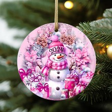 Personalized Pink Snowman Ceramic Ornament, Valentine Day 2D Ceramic Ornament