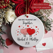 Personalized Our First Valentine's Day Ceramic Ornament Custom Couple Name Date