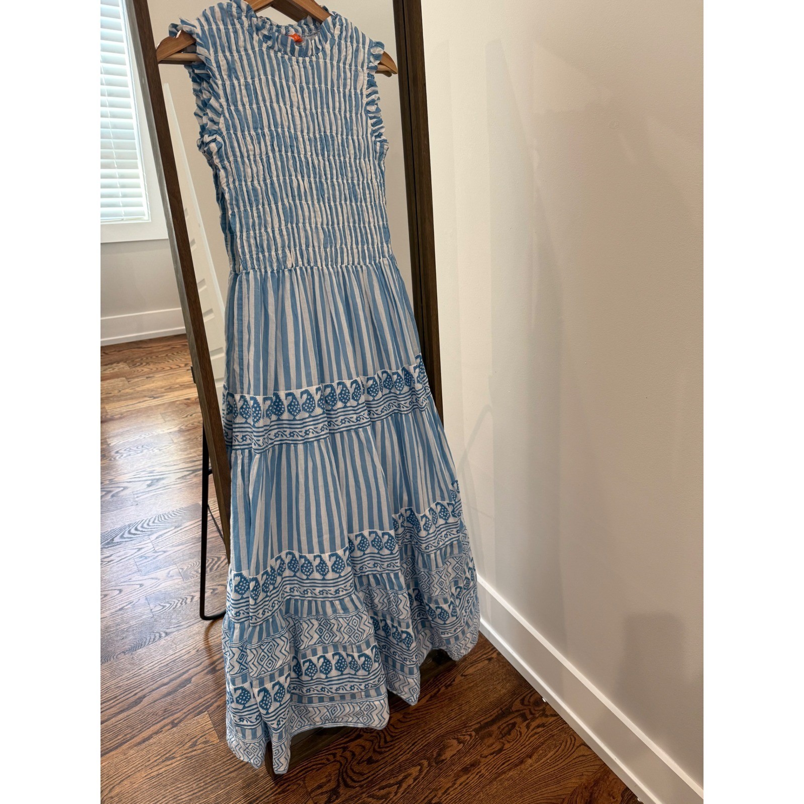 NWT Oliphant Smocked Flirty Mini in Vine Blue Gold Blockprint Cotton Dress XXS | ✔ Check At Store | $80.00 |