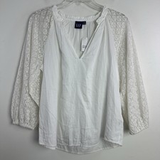 GAP Womens Small Lace V Neck Long Sleeve Top Peasant Boho Sheer NWT | ✔ Check At Store | $12.99 |