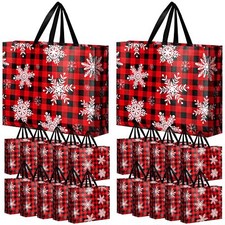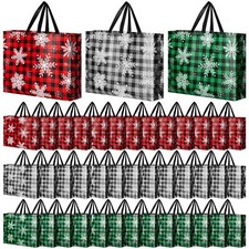 36 Pcs Reusable Christmas Large Gift Bags Bulk Xmas Holiday Plaid Tote Shoppi...