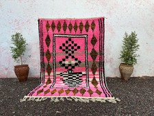 Moroccan Berber Beni Ourain Wool Rug Color Pink Green Design Area Carpet Rug
