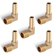 5pcs 90 Degree Elbow Brass Hose Barb Fitting - 3/8" Barb to 1/4" Male NPT Adapter. Heavier weight makes the air hose barb fittings much stronger than steels. Size: 3/16" Barb to 1/8" Male NPT, Barbed fitting for a tight seal on hoses and NPT threads for a tighter seal than straight threads.