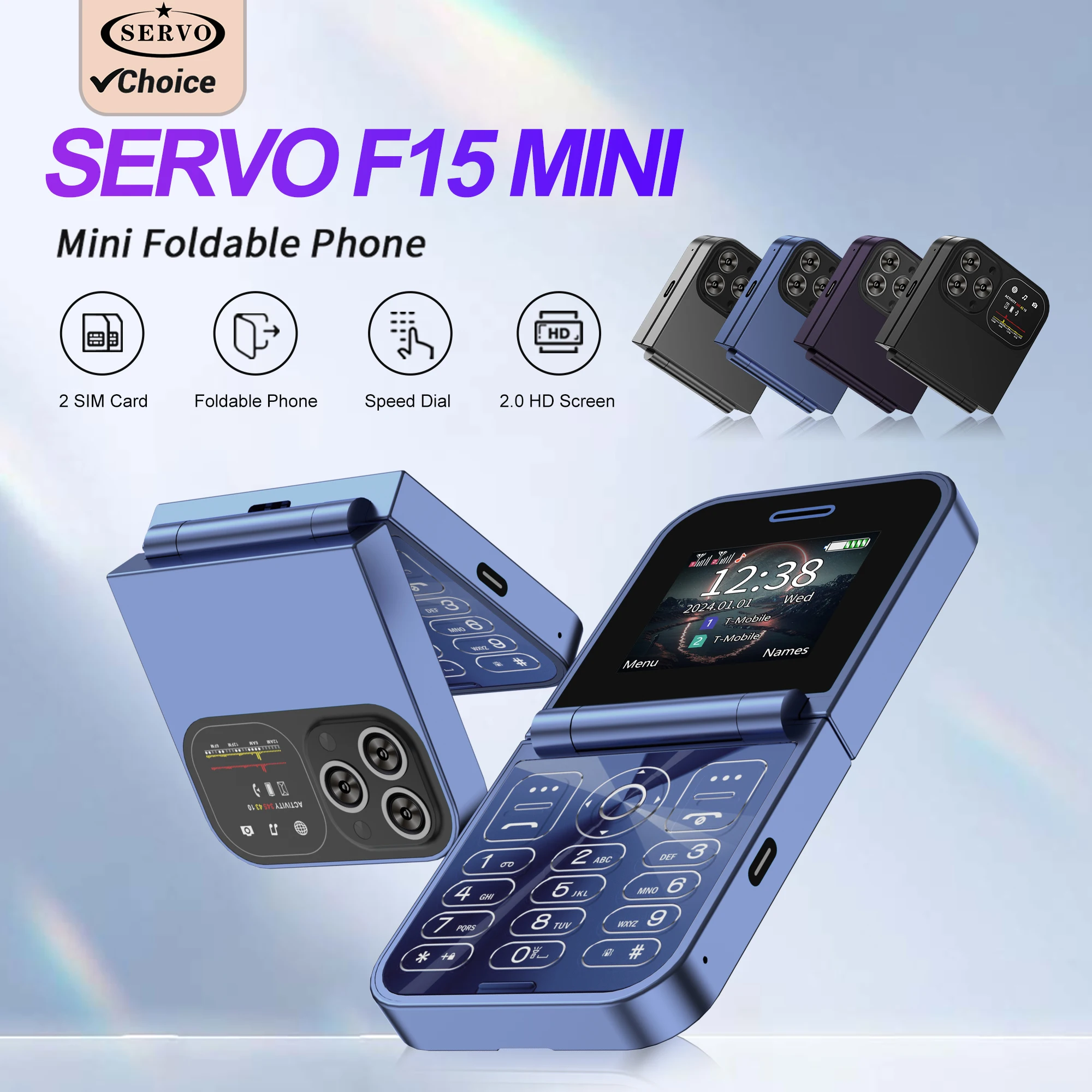 SERVO Mini Flip Mobile Phones 2.0" HD Display Dual SIM 2G GSM Speed Dial Auto Recoding Cell Phone Blacklist Magic Voice FM Radio