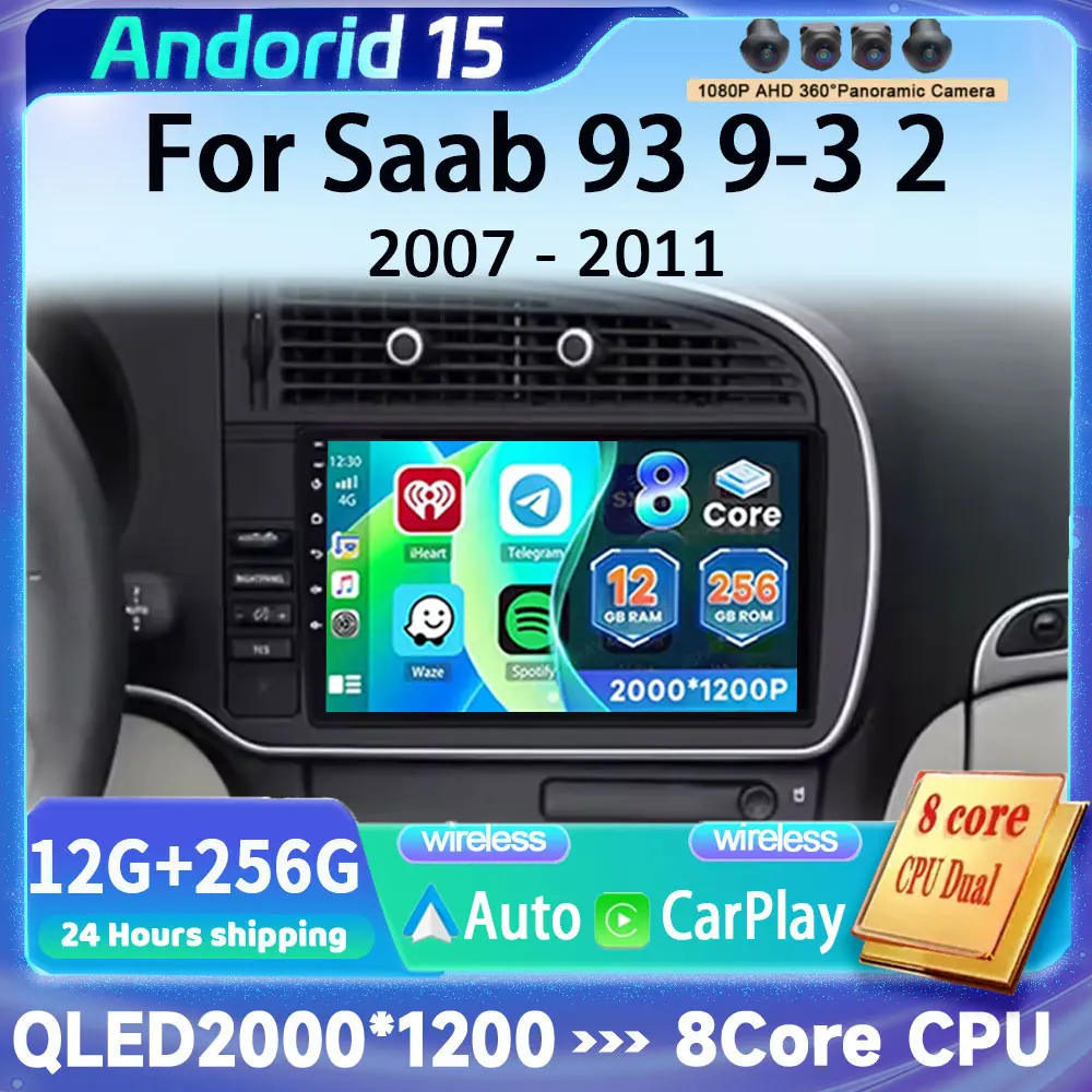 9 inch Car Radio Android 15 Wireless Carplay For Saab 3 2007-2011 Multimedia Player Video Stereo GPS Navigation Screen 4G WIFI