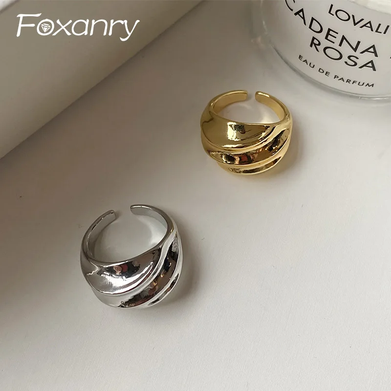 Foxanry Silver Color Pleated Rings For Women Couples Personality Creative Design Trendy Simple Niche Hip Hop Party Jewelry Gifts