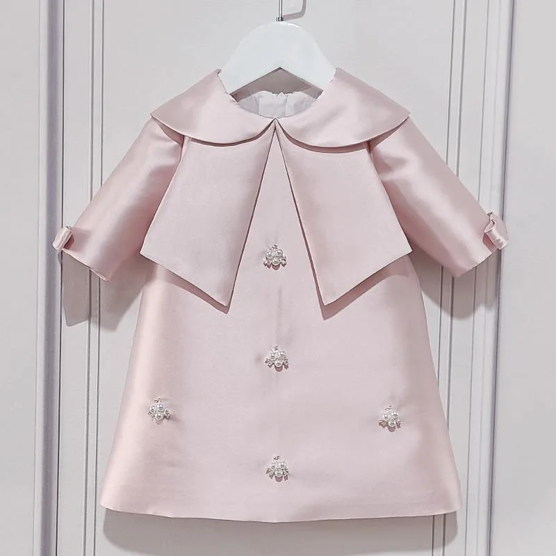 New Hot Sale A-line Princess Gown For Kids Piano Performance Classy Sweet Pearls Long Sleeve Girl Dresses Birthday Party Clothes