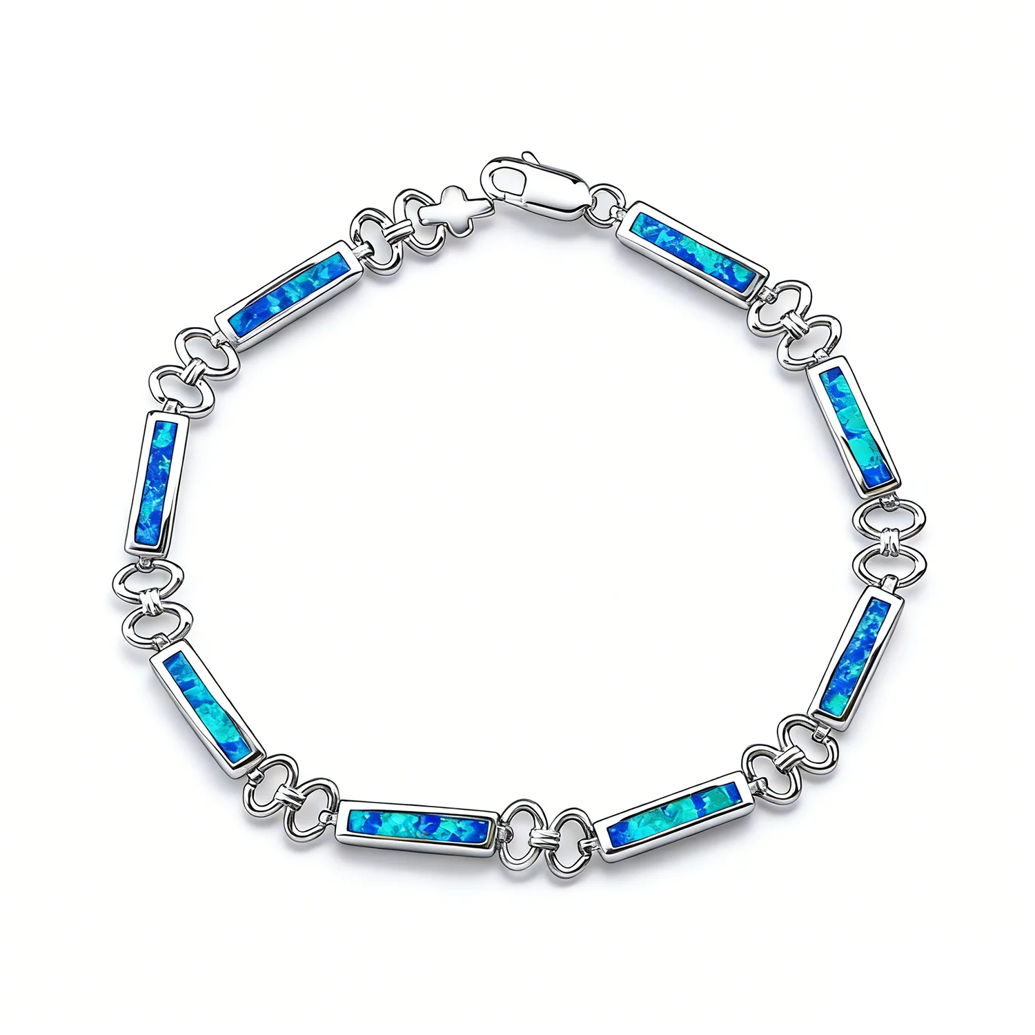 Hot Sale Real Silver Color Bracelets Blue Opal Fine Designer Jewelry Trendy Women Friendship Charms Bracelets Gifts for Women