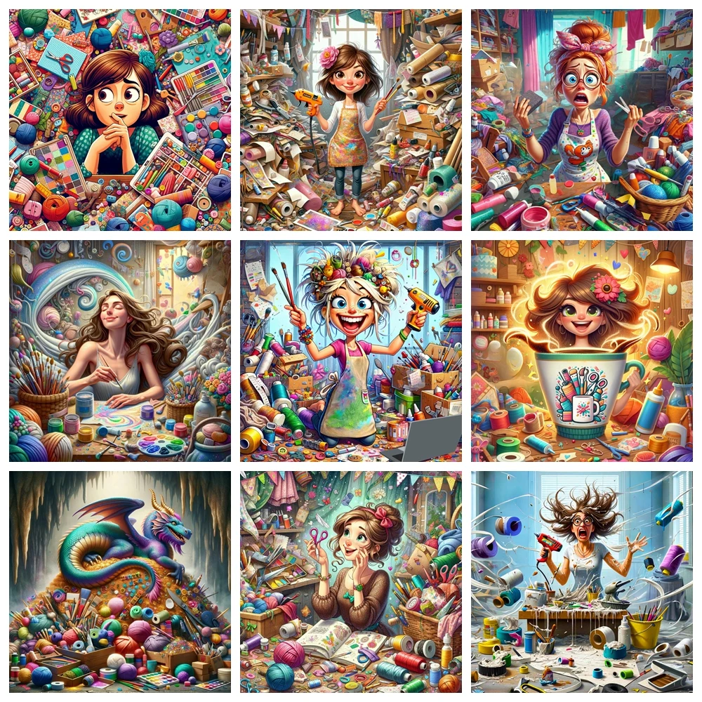 Cartoon Artist Girl 5D DIY Diamond Painting Mosaic Fantasy Art Crafts Embroidery Full Round Drill Cross Stitch Home Decor Gift