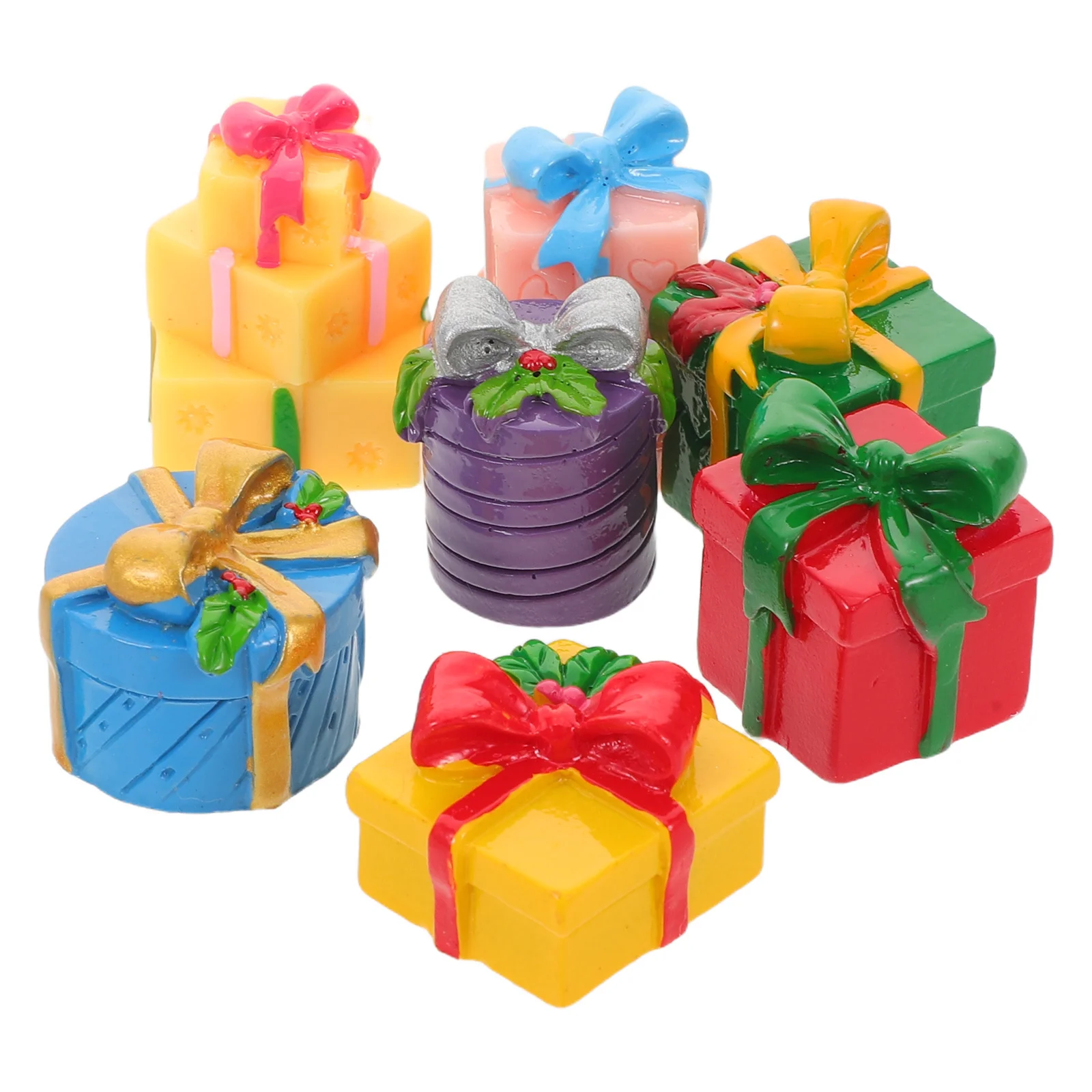 7Pcs Christmas Miniature Gift Boxes Realistic Resin Mini Presents Xmas Tree Decor DIY Crafts Home Decoration Miniature Gift Box