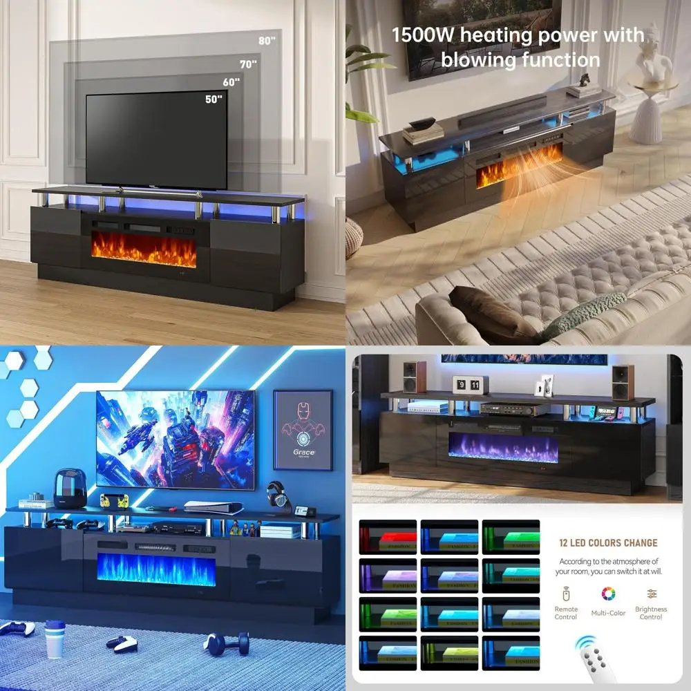 70" ireplace TV Stand, ern Entertainment Center & 36 Inch Electric ireplace with Remote Control, LED Light, ire Place Tv Stand o