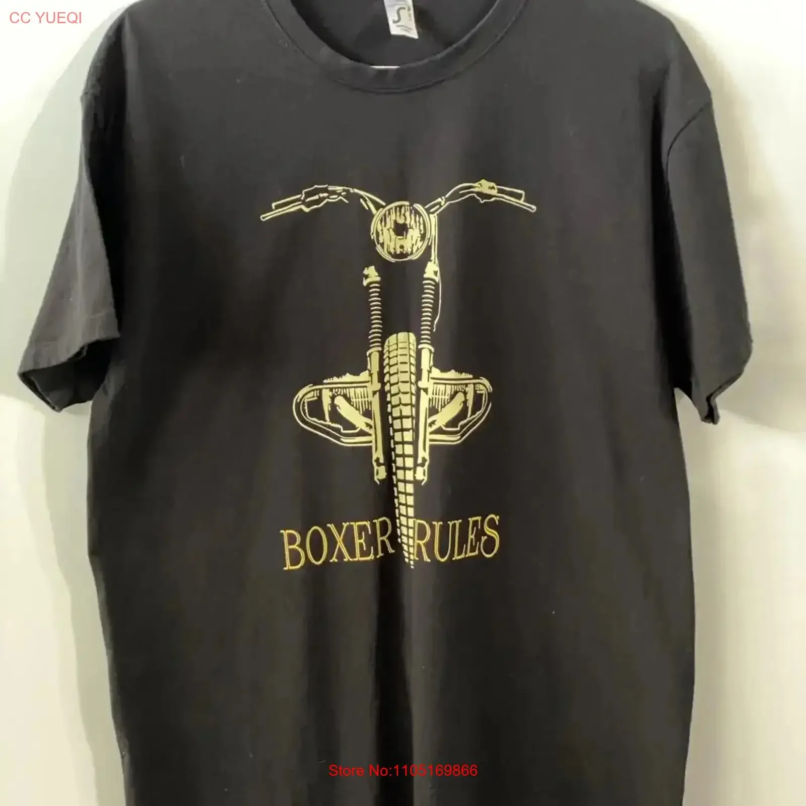 Black T shirt Size XL crew neck Short sleeve Boxer Rules with Motorcycle vintage Washed fashion Soft Comfortable Casual