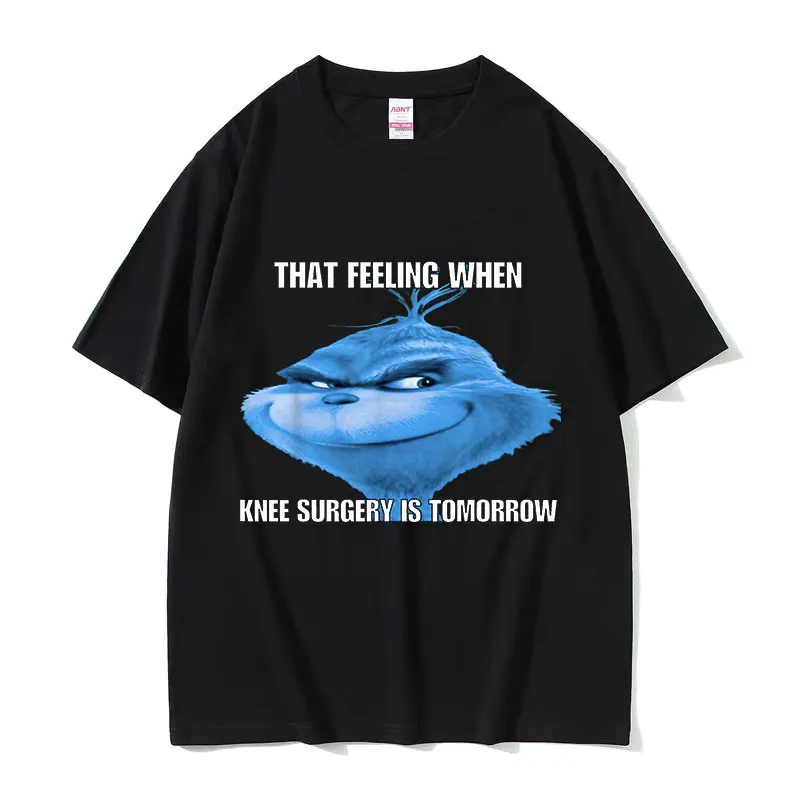 Funny That Feeling When Knee Surgery Is Tomorrow Meme T Shirt Men Retro Fashion O-Neck Oversized Cotton T-shirt Streetwear