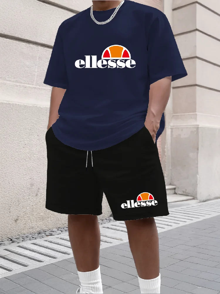 Fashionable summer men's short sleeved T-shirt and shorts set casual round neck short sleeved shorts two-piece set