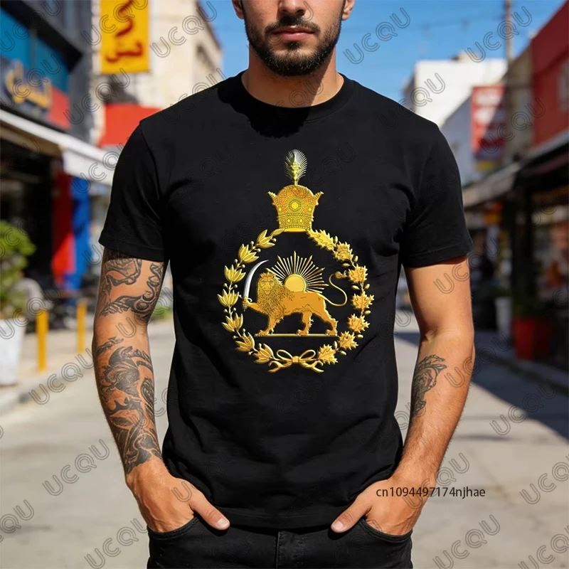 Iran Lion and Sun Pahlavi Dynasty Shir O Khorshid Graphic Men's Cotton T-shirt Summer Sports Tees Casual Surfing Kids/Adult Tops